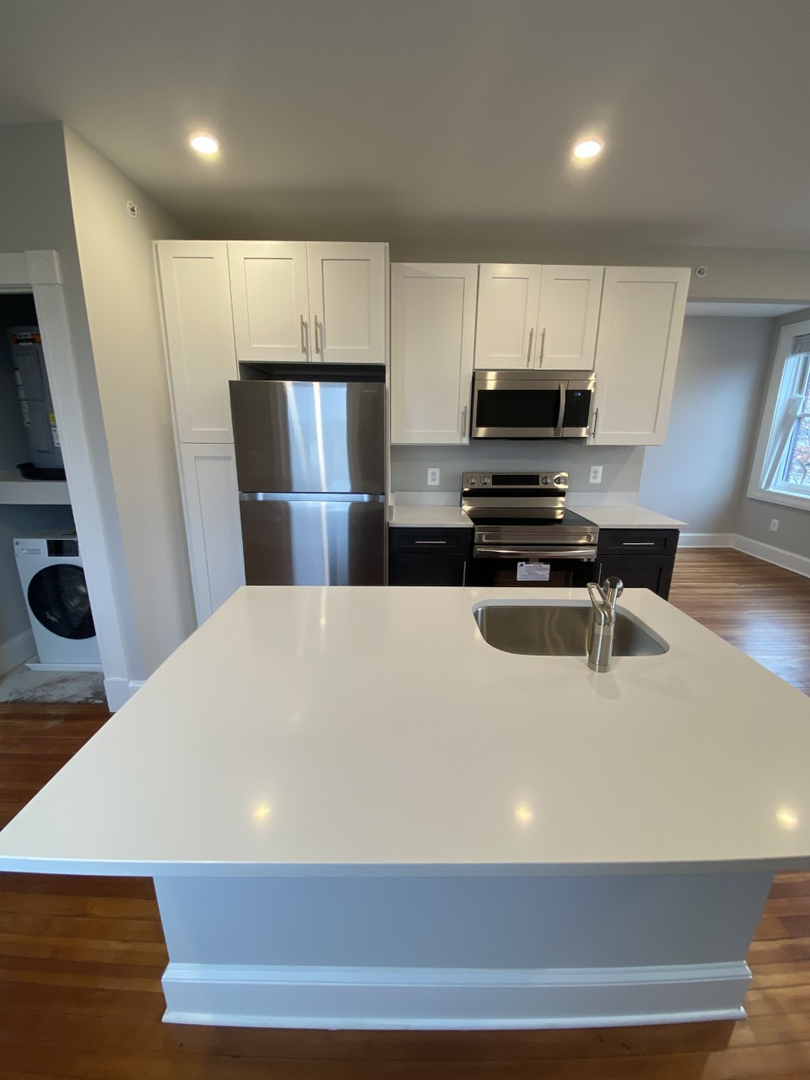 Lovely and renovated Canton 1bd/ba apartment with gleaming hardwood floors and overhead lighting throughout. Kitchen boasts granite counters, wood cabinetry and stainless steel appliances to include a dishwasher and microwave over range as added convenience. Kitchen island is perfect for entertaining! Gorgeously updated bathroom with tile flooring and tiled walk-in shower. Tall windows with lots of light adorn the space! Washer/dryer in unit. Central a/c. 514 square feet of living! Utilities not included in rent. Available 4/10