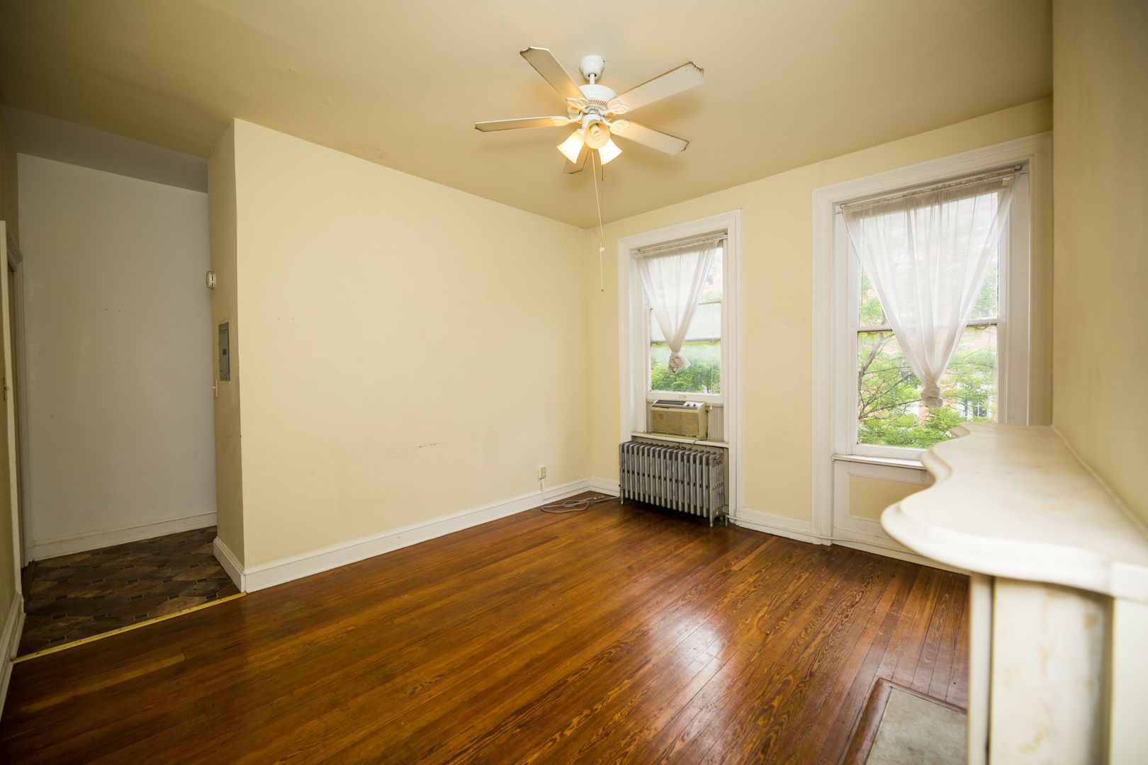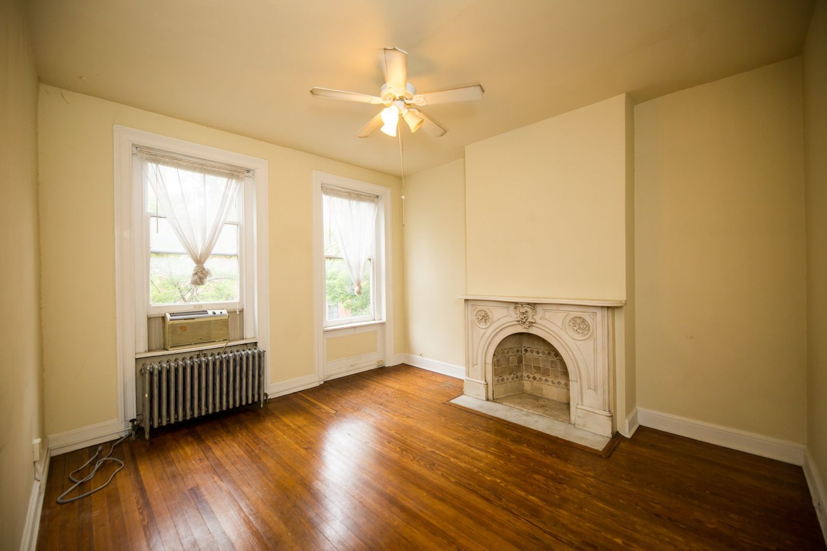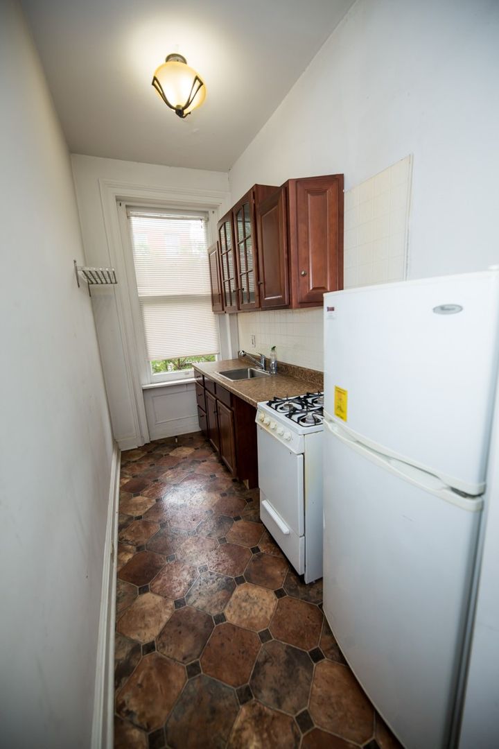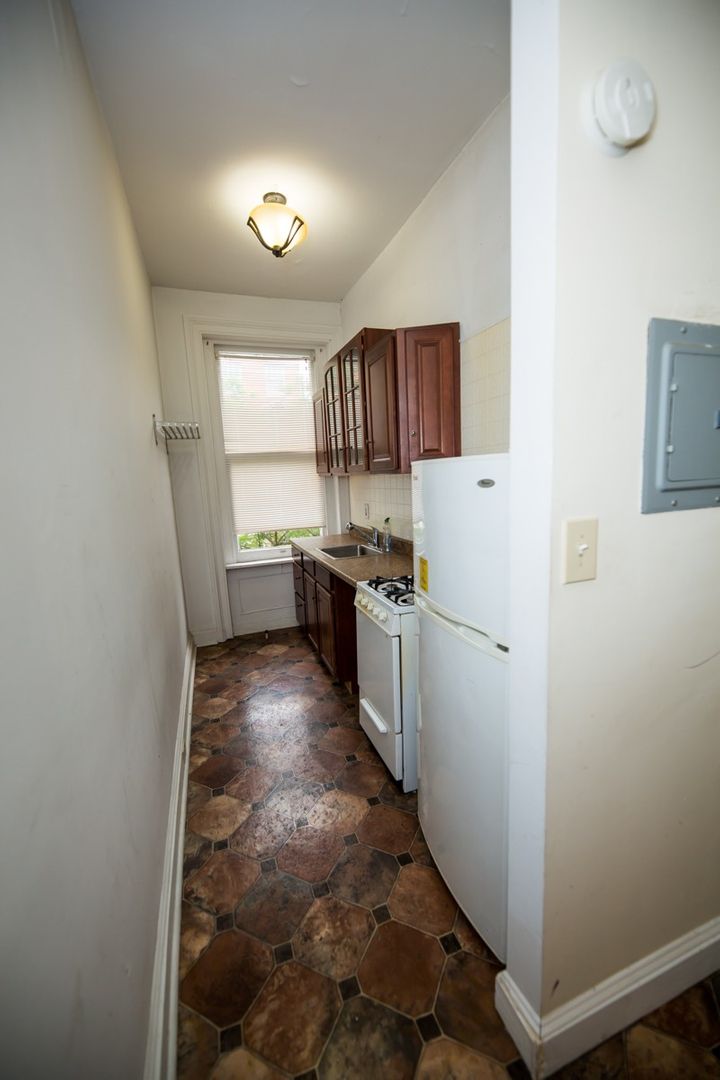 Nice and spacious 1bd/1ba Mt Vernon apartment with hardwood floors throughout. Ornamental fireplace adding to its charm! Updated galley-style kitchen with lots of cabinet space. Ceiling fans with overhead lighting. Washer and dryer access at 6 E Read Street. Utilities not included. Available 6/15