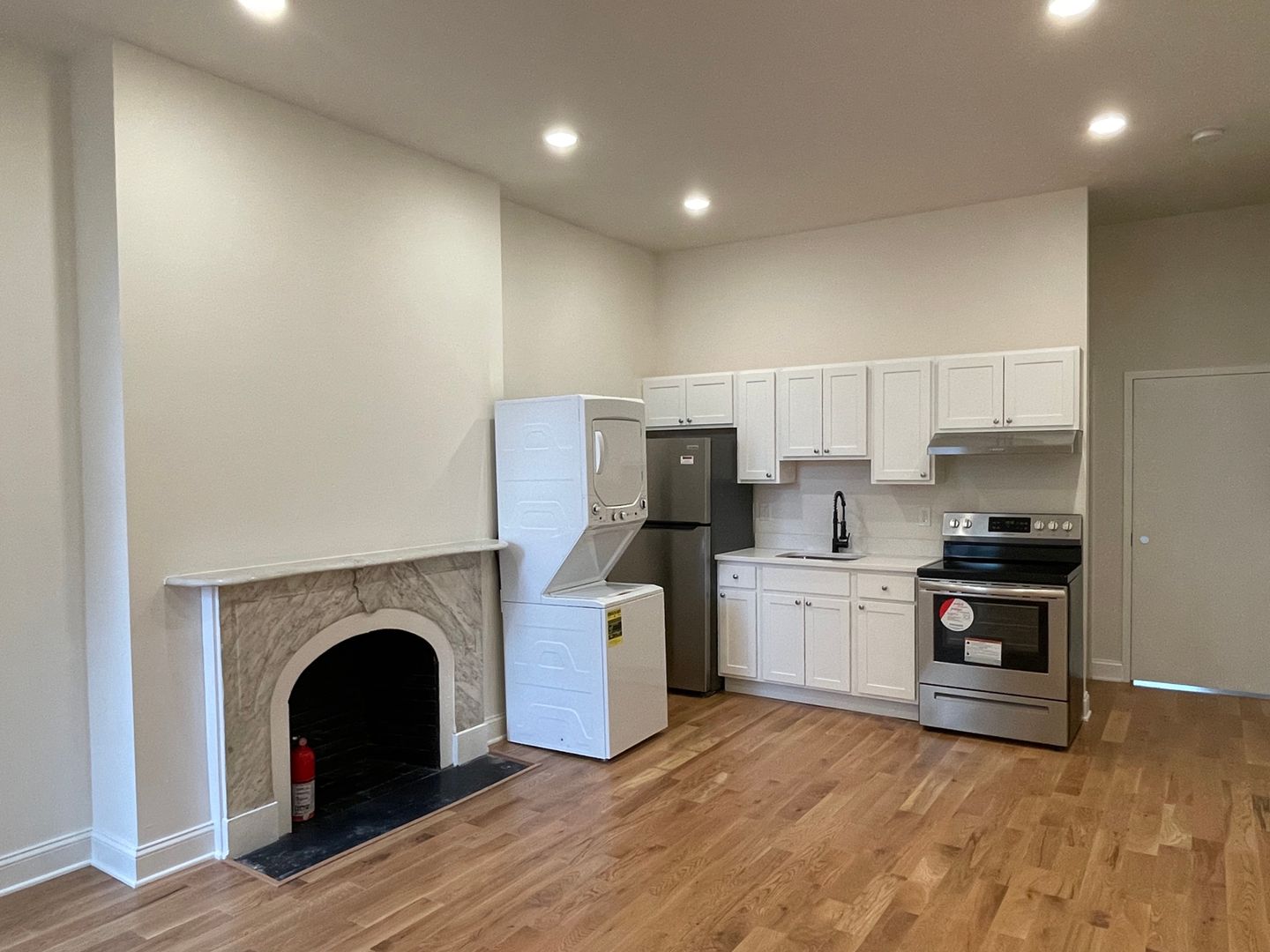 Beautifully and fully renovated Mt Vernon 2nd Floor Studio. Brand-new hardwood flooring and recessed LED overhead lighting in main living space. Brand new kitchen with stainless steel appliances and new cabinetry featuring soft-close cabinets. Washer/dryer in unit! Brand new bathroom with tile surround and tile flooring! A/C! Gorgeous ornamental fireplace adds charm to this lovely studio!--Utilities not included with rent. Available 5/15