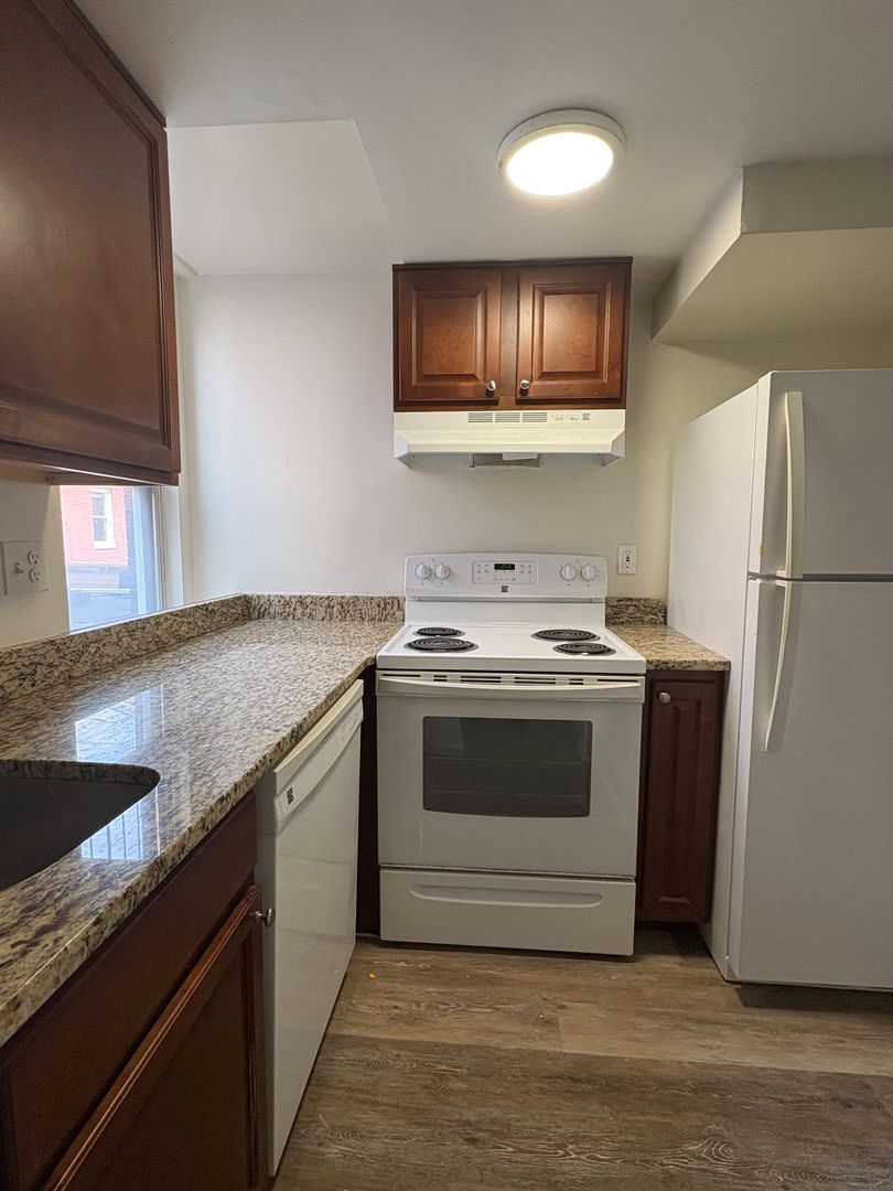 Spacious Mt Vernon 1bd/1ba with carpet in living room and bedroom. Overhead lighting. Updated kitchen with granite counters and oak cabinetry. There is also a dishwasher for added convenience. Washer/Dryer in unit! Ornamental fireplace. Updated bathroom luxury vinyl flooring. Square footage: 500 square feet. Utilities not included in rent. Available now